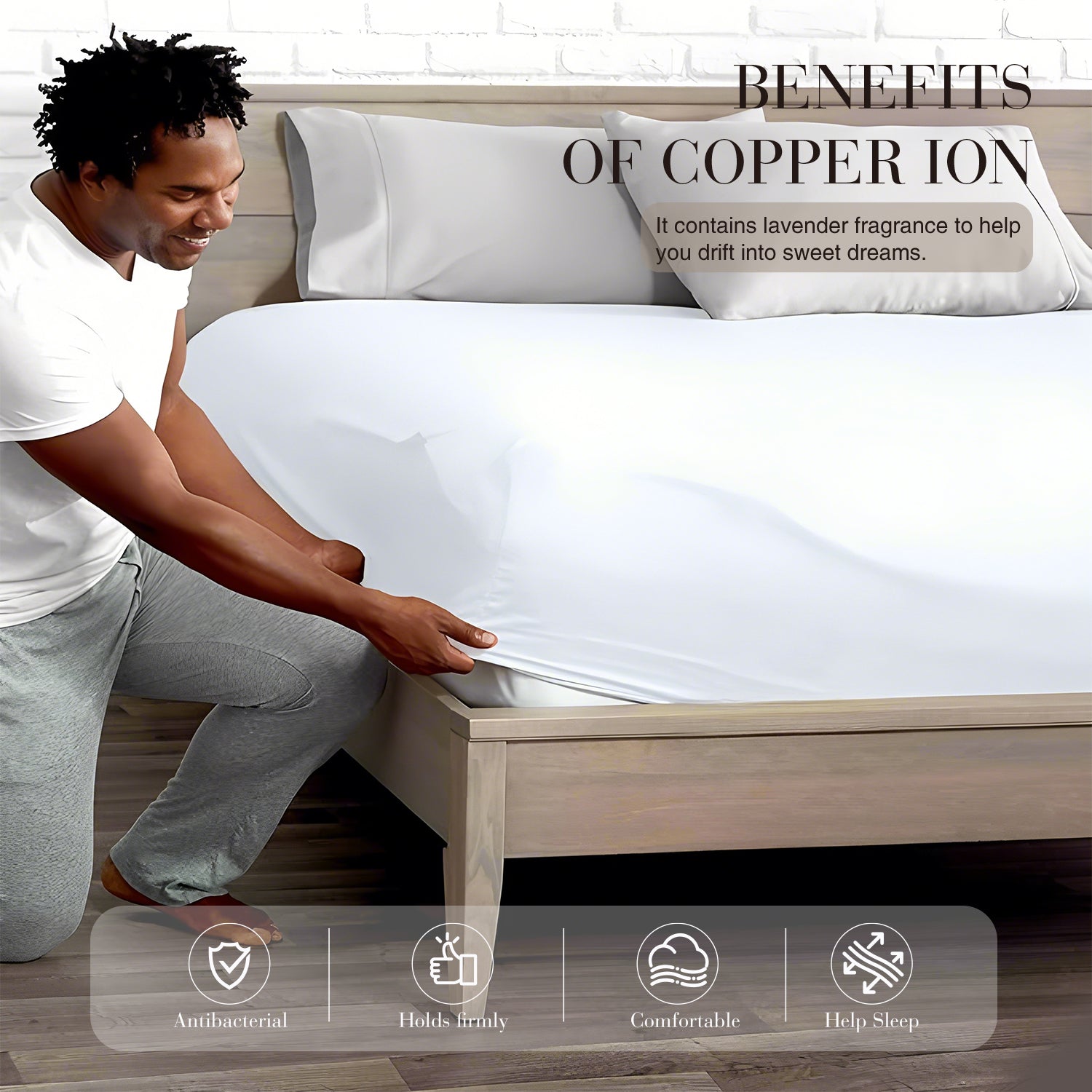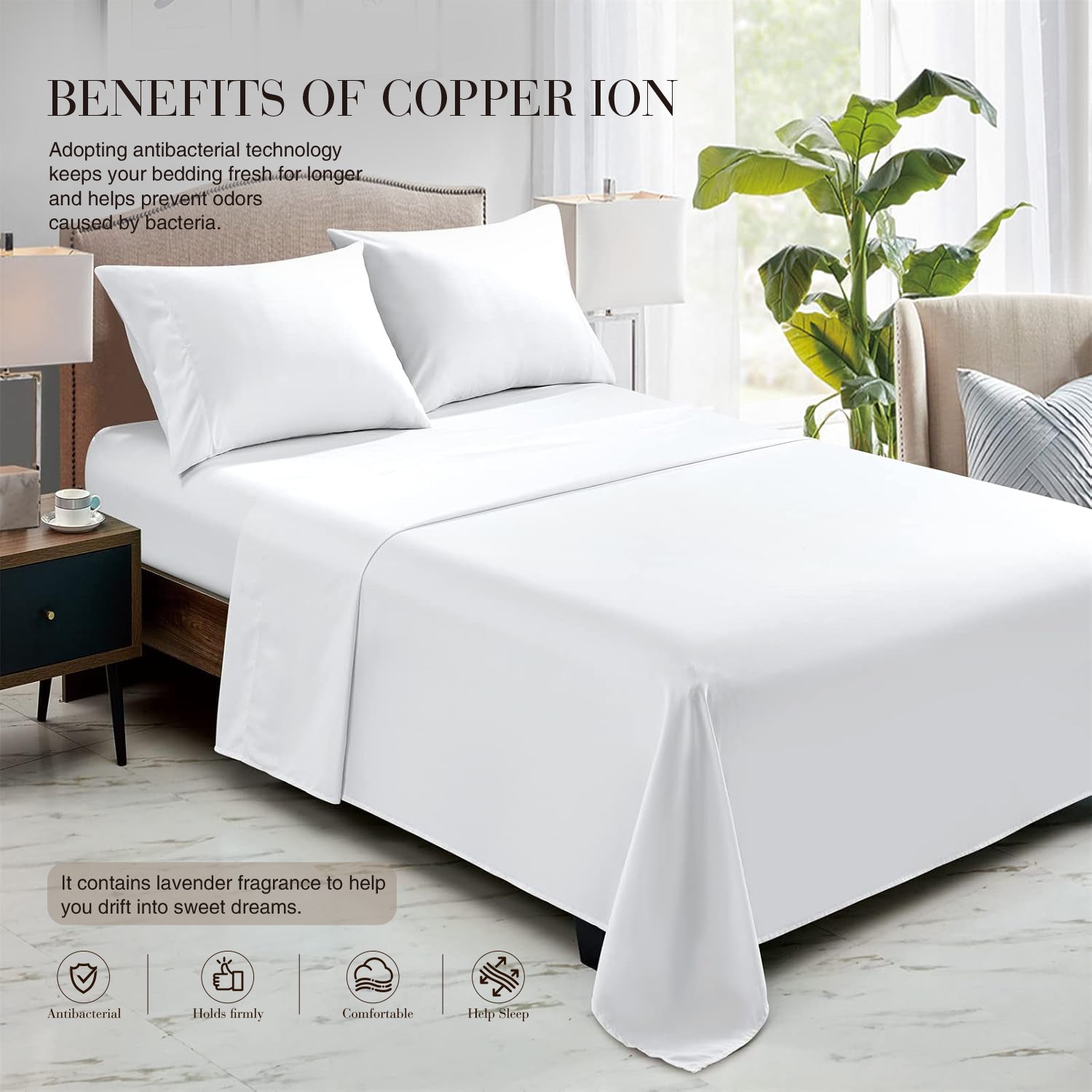 Our fitted sheet set is powered by "advanced copper ion fibers", a breakthrough innovation that transforms your bedding into an active antibacterial shield. Unlike ordinary sheets that only stay clean until the next wash, copper ions continuously neutralize bacteria, fungi, and odor-causing microbes on contact — day and night. Clinically tested and proven to achieve **99.96% antibacterial efficacy**, COZHOM copper bedding creates the cleanest, healthiest sleep surface you’ll ever experience.