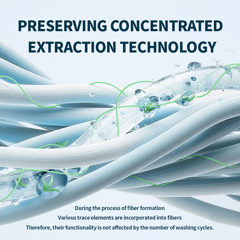 Herbal plants undergo high-efficiency extraction and concentrated extraction processes. Active ingredients are protected against high temperatures and strong acids/alkalis, effectively preserving the efficacy of the herbs. The extracted plant active factors are integrated into the fibers for long-lasting effect.